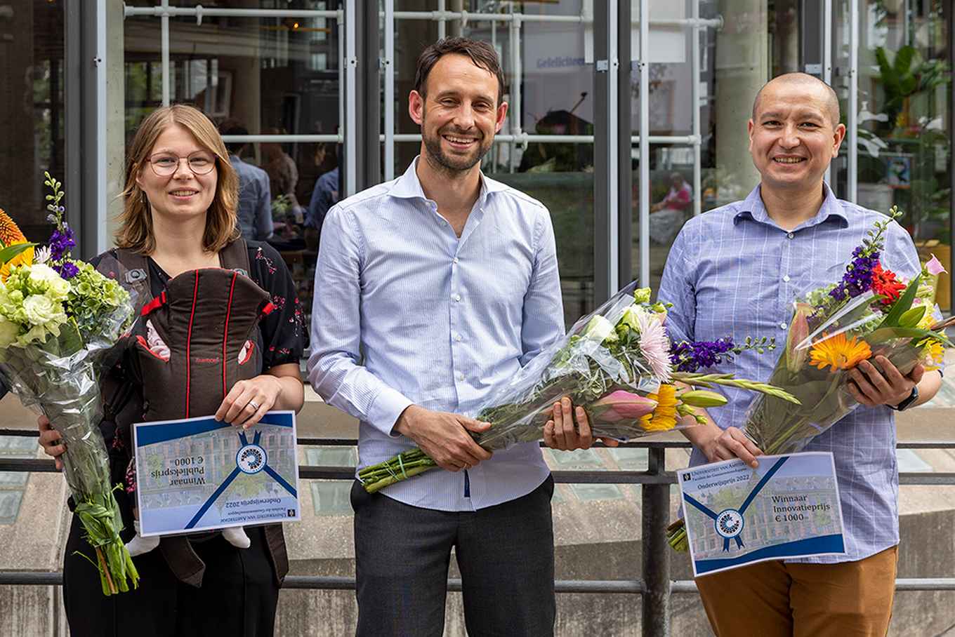 De winnaars van de Onderwijsprijs 2022, vlnr: Roswitha Dickens, Peter van Dam, Robert Cloutier.